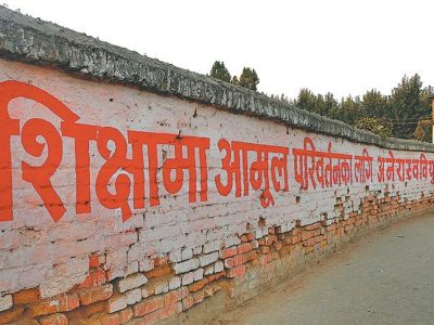 काठमाडौं । विद्यार्थी संगठनहरूले स्ववियु चुनाव लक्षित गरी नारा लेखेका सार्वजनिक भित्ता अझै मेटिएका छैनन् । त्रिभुवन विश्वविद्यालयअन्तर्गतका क्याम्पसहरूमा १८ फागुनमा स्ववियु चुनाव ...